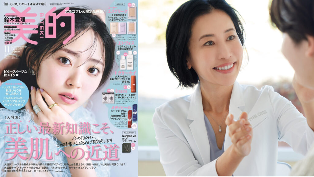 美容雑誌『美的.com』の取材で上原恵理医師が「秋は敏感肌でなくても肌がゆらぎやすい時期。いかに保湿力の高い肌をキープできるかが乗り切る鍵です!」とのアドバイス